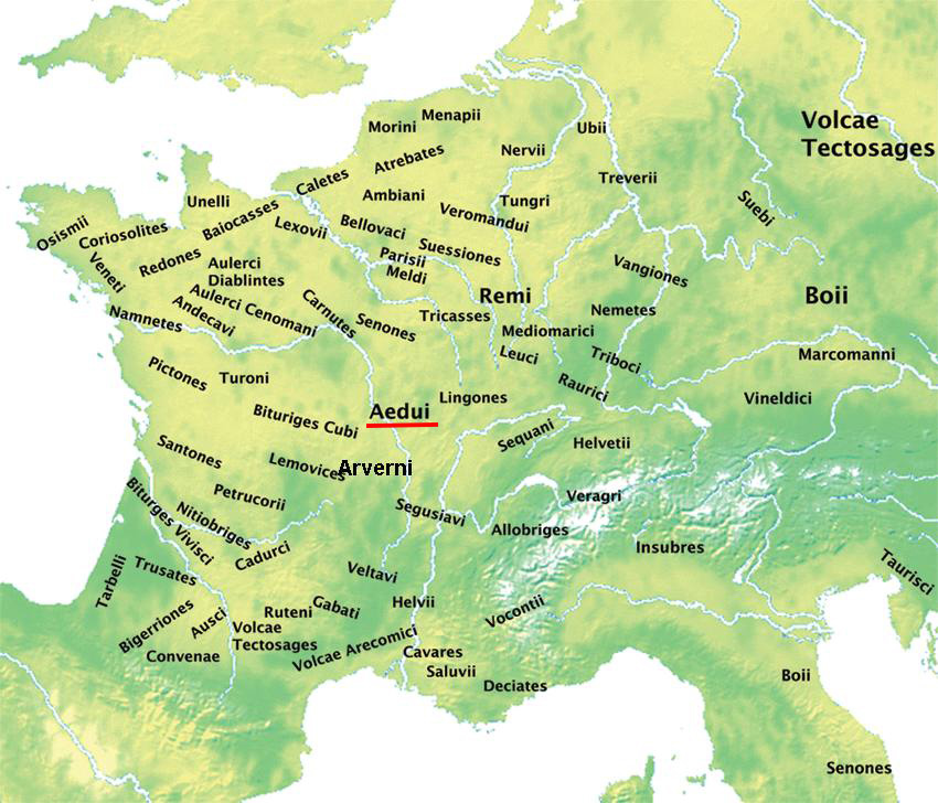 Keltský kmen Aedui - Aiduoi - Aeduové - Haeduové - žil v dnešním Burgundsku (jihovýchodní Francie).