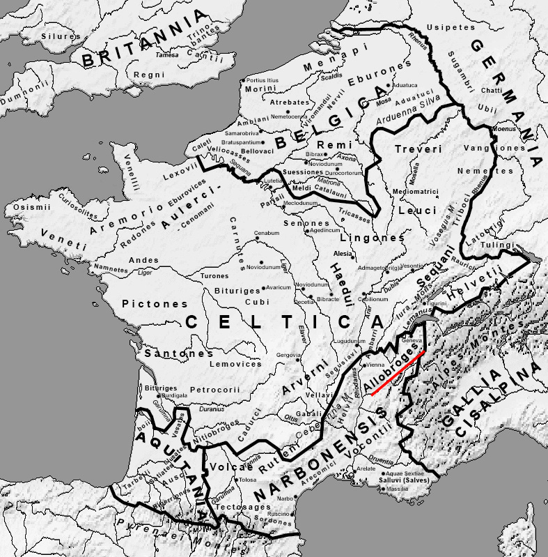 Keltský kmen Allobrogové - Allobroges žil na jihu Francie v okolí dnešního města Vienne.
